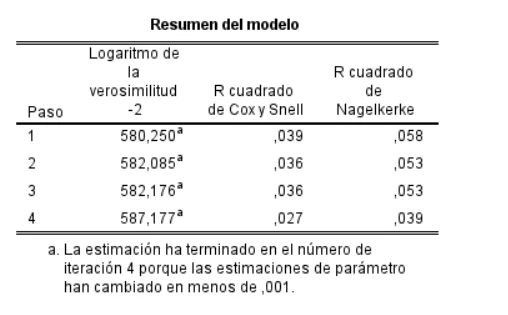 • Los valores de R² de Cox-Snell y de Nagelkerke.