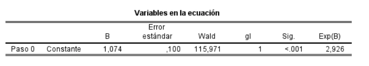 • Variables en la ecuación: coeficientes B, error estándar, Wald, p y Exp(B).